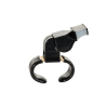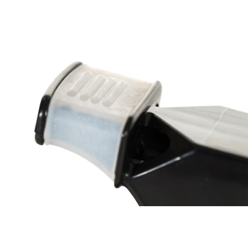 Fabriqué en plastique ABS hautement résistant , imperméable à la moisissure, sans bille et sans mécanisme.pouvant obstruer. Ce sifflet haute fréquence se porte à l'index et au majeur grâce à son support en laiton.