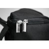 Compartiment de rangement au bas du sac à double fermeture à glissière.